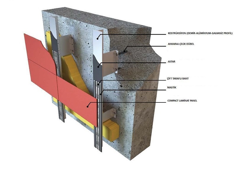 Kompakt Laminat cephe kaplama, alüminyum profillerden yapılan, binanın dışına estetik bir görünüm kazandıran kompakt laminat plakaların güvenli bir şekilde monte edilmesinden oluşan cephe sistemidir. Diğer cephe sistemlerine göre birçok artısı olan kompakt laminant cephe kaplamalarının en büyük artısı binanın nefes almasını sağlamasıdır. Bunun için havalandırmalı laminat alt konstrüksiyon kullanılmalıdır.