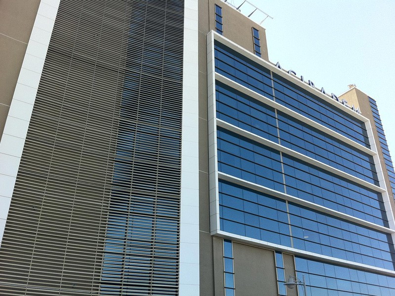 Döşeme, kiriş, kolon ve mekanik aksama ait görünen yüzeylerin oluşturduğu Spandrel bölgeler emaye boyalı camlarla veya kompozit paneller tercih edilerek gizlenir.